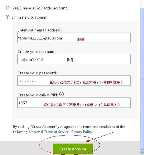2:如图填写,用户名,邮箱,密码(密码必须大于9位,包含大写,小写和数字)。点击Create Account,账号注册成功,已经可以使用。